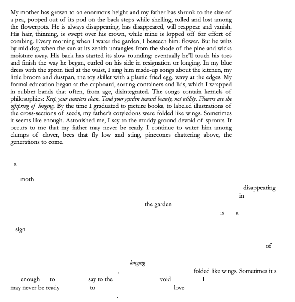 This piece owes a debt to Kimiko Hahn, Tina Chang and Eugenia Leigh, whom I know only through their poetry and scholarship. Their work has intensified my affection and appreciation for the zuihitsu, a centuries-old feminist form originating in Japan with The Pillow Book by Sei Shōnagon. I was introduced to the zuihitsu in my regular poetry workshop through Madwomen in the Attic out of Carlow University in Pittsburgh and hope I’ve been able to honor its lineage and tradition.