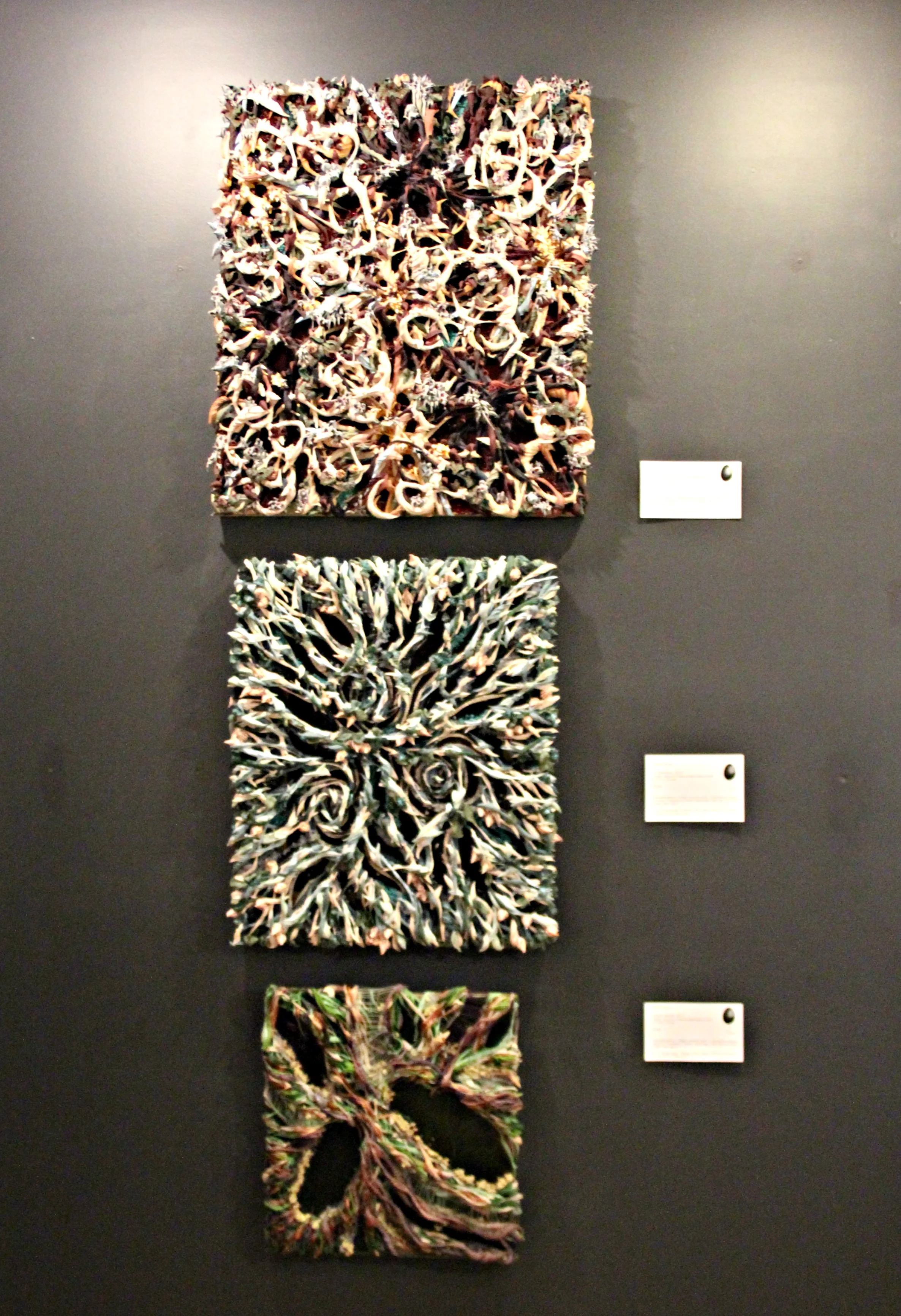 #1. 3D paintings installed that include multiple mediums and pull you in.