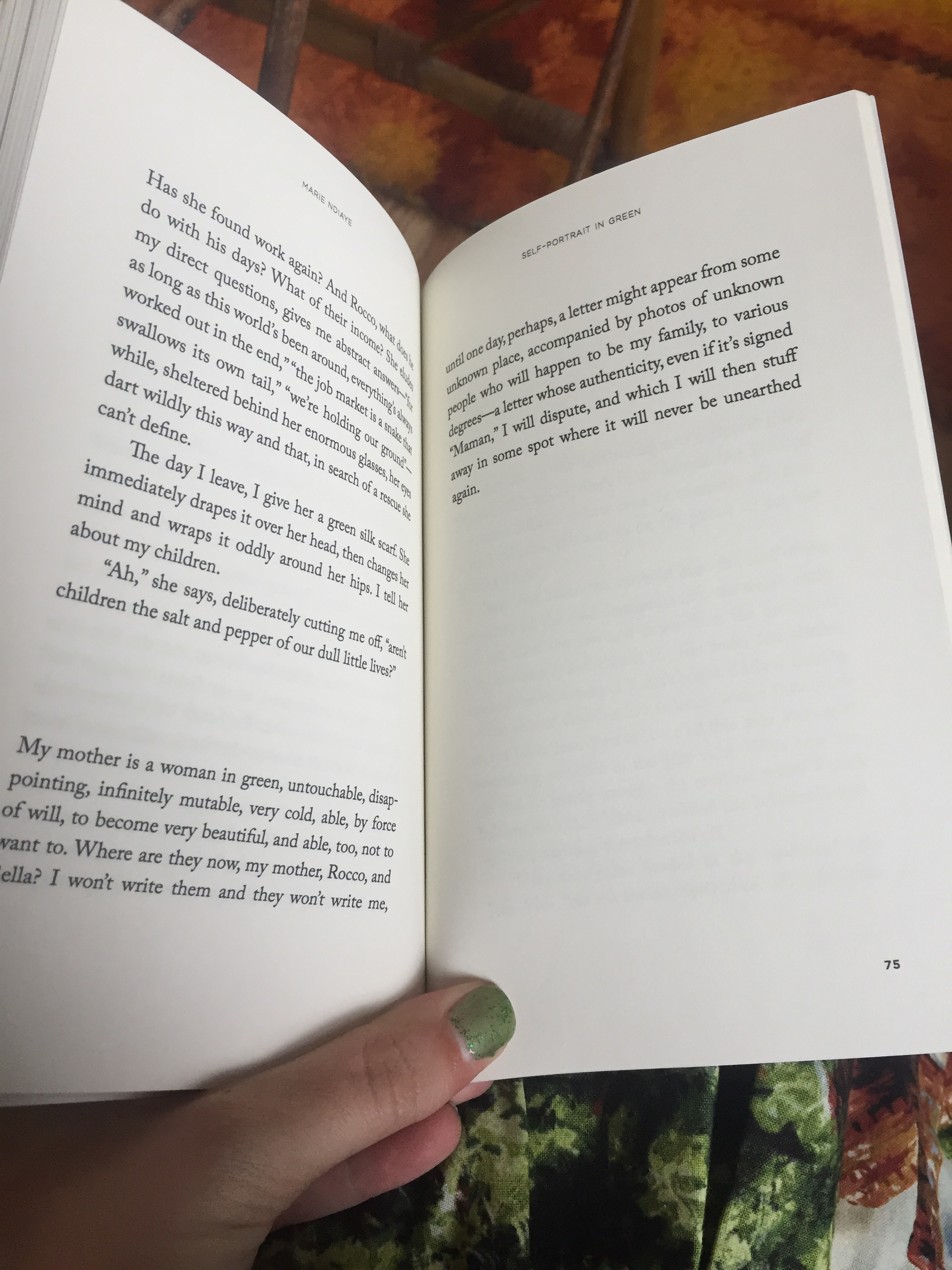 8. Self-Portrait in Green - Marie Ndiaye, translated by Jordan Stump (Two Lines Press, 2014)