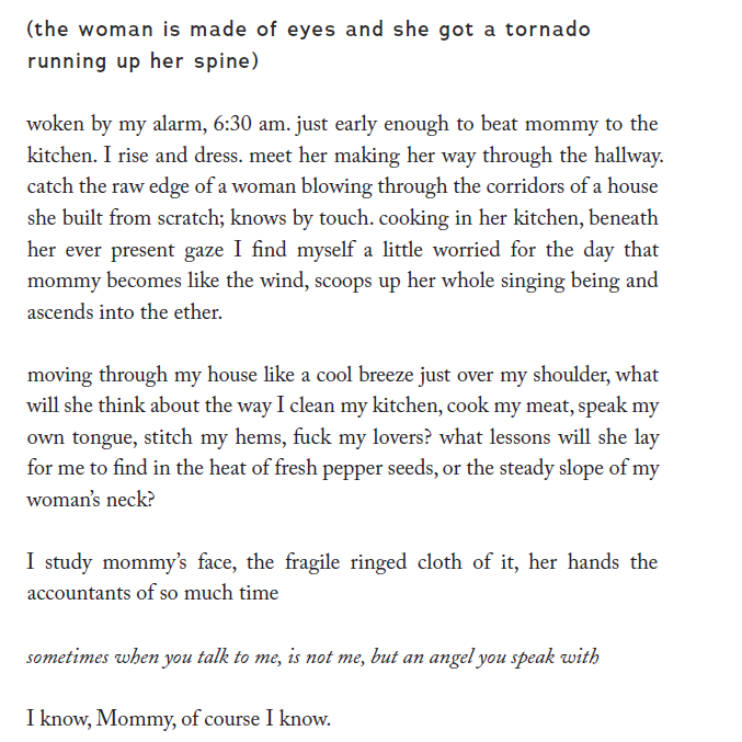 Work by CAConrad, Charles Theonia, Faye Chevalier, Kamden Hilliard, and Cam Awkward-Rich are a few of the authors included whose work is truly magnificent.