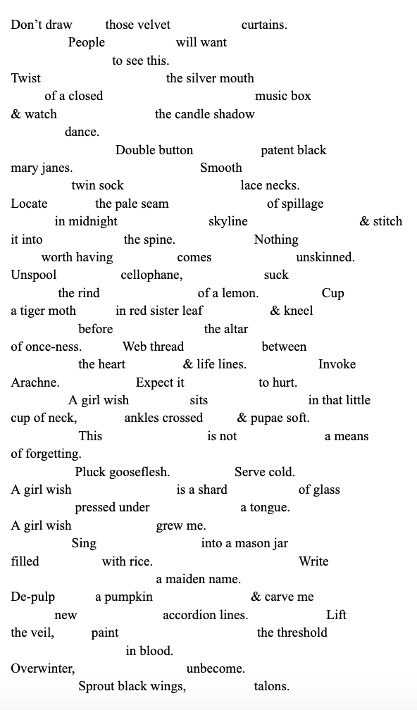 Amanda Gaines is an Appalachian writer with a Ph.D. in creative writing from Oklahoma State University. Her work has been published in Passages North, Cleaver, Potomac Review, Barrelhouse, Fugue, december, Witness, Southern Humanities Review, Willow Springs, Yemassee, Redivider, New Orleans Review, Southeast Review, The Southern Review, Juked, Rattle, Pleiades, SmokeLong Quarterly, Ninth Letter, and Superstition Review. She's currently a postdoctoral fellow at the University of Tennessee.