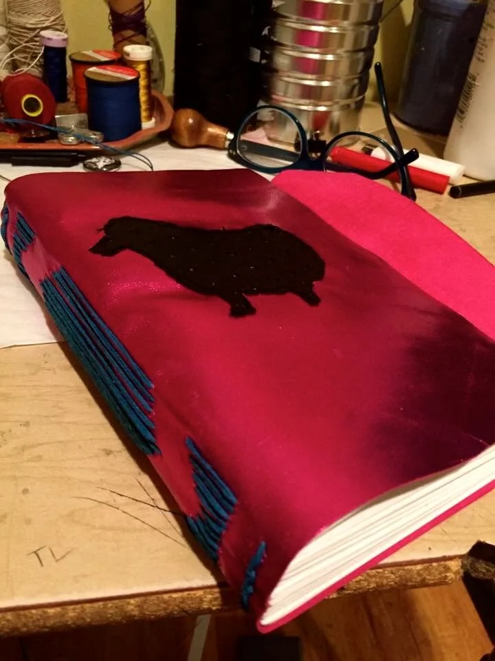 Rebecca Gonzales: I have been binding for about 3 years now. I am for the most part self-taught. I just gained an apprenticeship with a master binder from Los Angeles in January and I get to work beside her in her bindery. It has been an amazing experience to learn beside a woman who has been binding for 30 years.