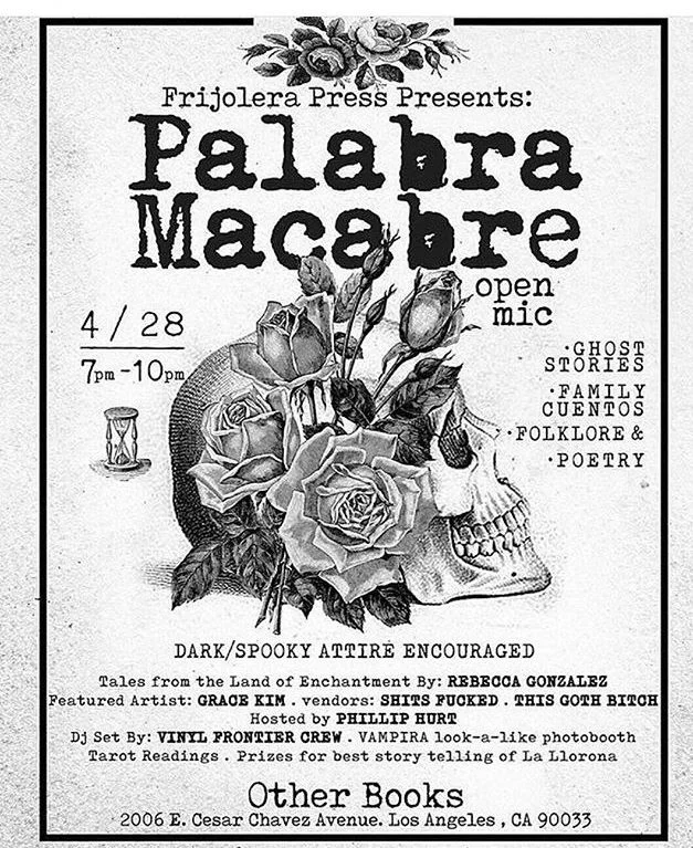 An event Gonzales performed at this spring. Flyer by Rick WestKoast of Originals Magazine. Event organized by Alma Rosa of Frijolera Press.