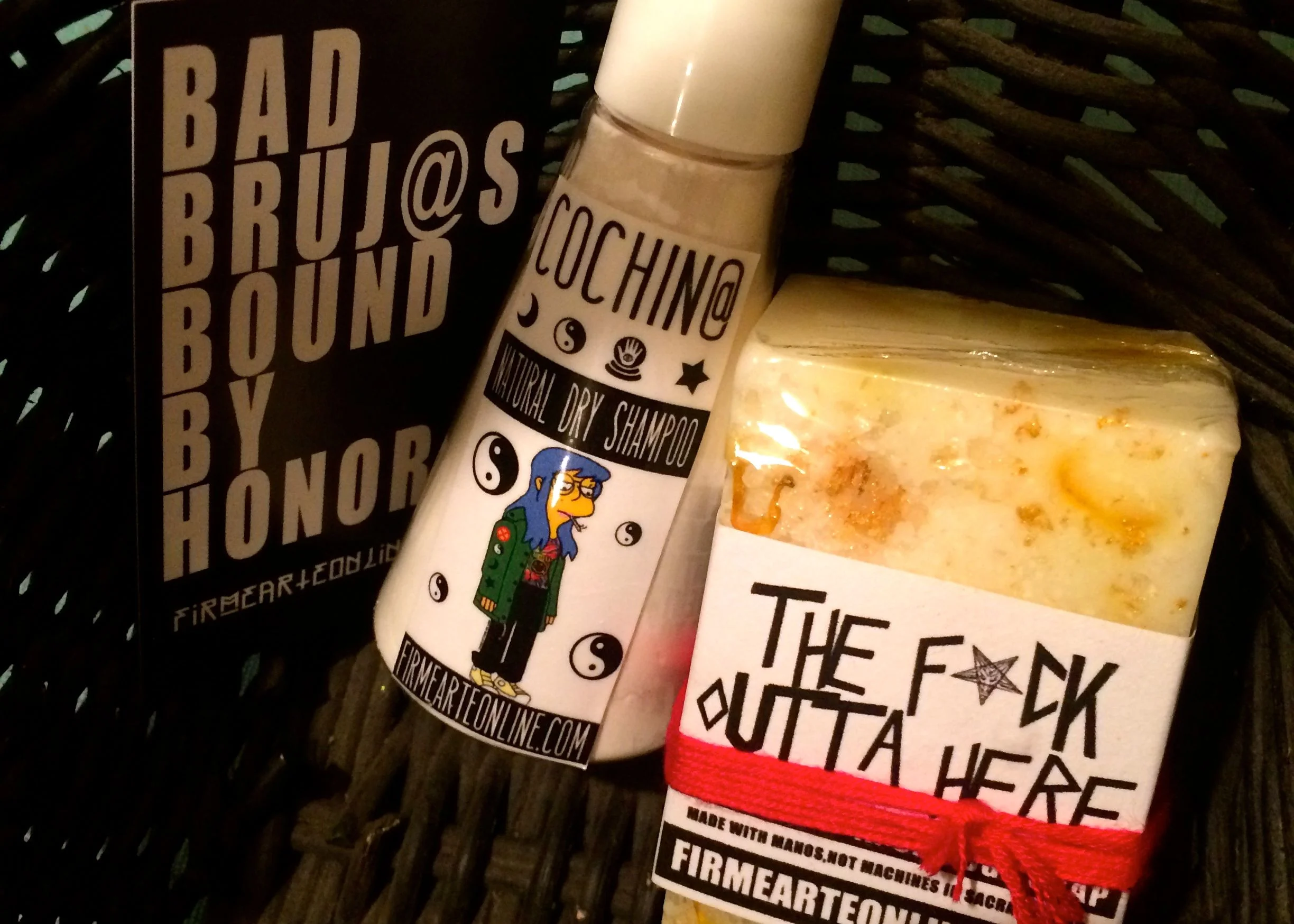 I first learned about Firmearte from a dear friend. She left a Posada spell soap on my desk one day at work. I still haven’t used the soap because I find the smell and shape and look of the soap so intoxicating—it’s dotted with glitter and looks like a hazel-hued sky. Based in Sacramento, CA, Firmearte was founded in 2011 and is owned by Natalie G., who says the company represents, “…strong, empowered, witchy human beings dedicated to the pursuit of truth, self growth and a divine connection to the universe…. Queer Hopi- Xican@ Arte, Cultura & Magick.” Natalia lovingly refers to her customers as “Babes,” and her company has a positive and politicized spirit. It’s mantra is, “Witchy Cosas Made With Manos Not Machines.”