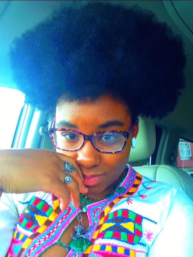 As I’m walking down my favorite aisle, the essential oils and body care aisle, I am looking for some evco (extra virgin coconut oil). My afro has been pulled into a big top puff using an old hair tie and I am wearing a dress that I can only describe as American Horror Story: Cult (it’s long and white with psychedelic aztec-ish looking markings). The look has attracted a lot of attention, but I’m mostly satisfied because of the light and airiness of my dress, and because my hair tie is keeping my ‘fro from sticking to the back of my neck. August weather is unbearable.