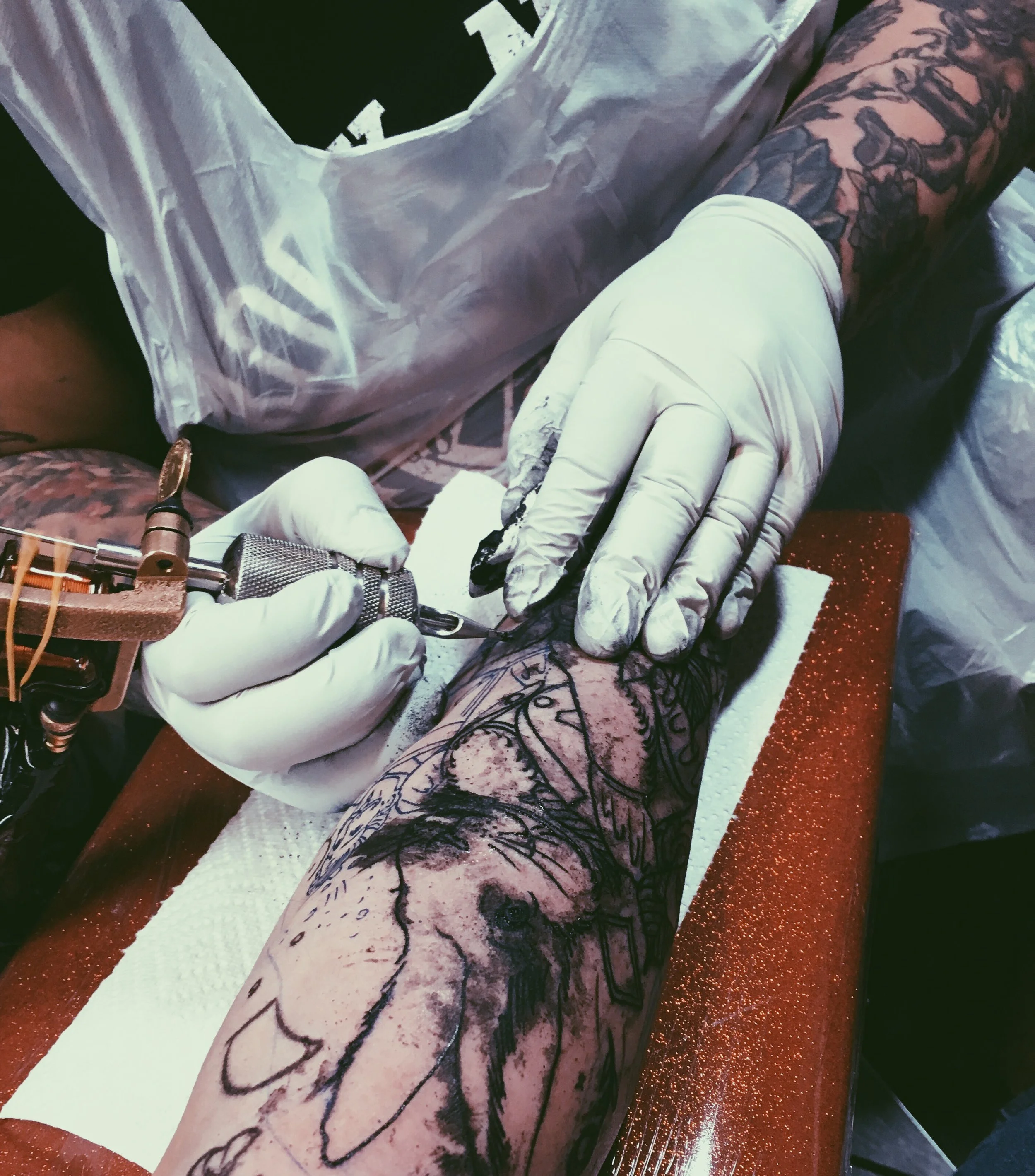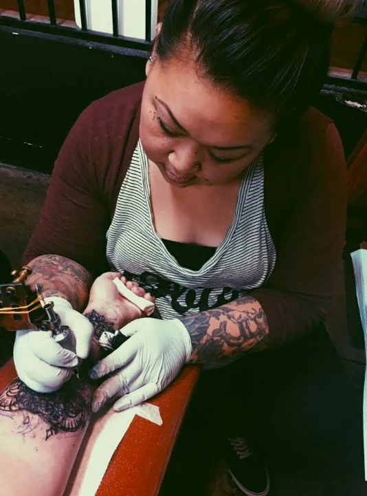 Every day, people go to tattoo artists wanting to camouflage their fatness and their scars, their strange quirks. They’re anxious about the way their tattoo will change if their body grows or shrinks, or ages. Tattooing is a way to cover what people see as their flaws. My artist, Cat Houngsombath, who works at Resistance Tattoo Parlor, says, "People get tattoos to distract. You think no one’s ever going to look you in the eyes again. Then you get that one person who's like wow, your eyes are really blue."