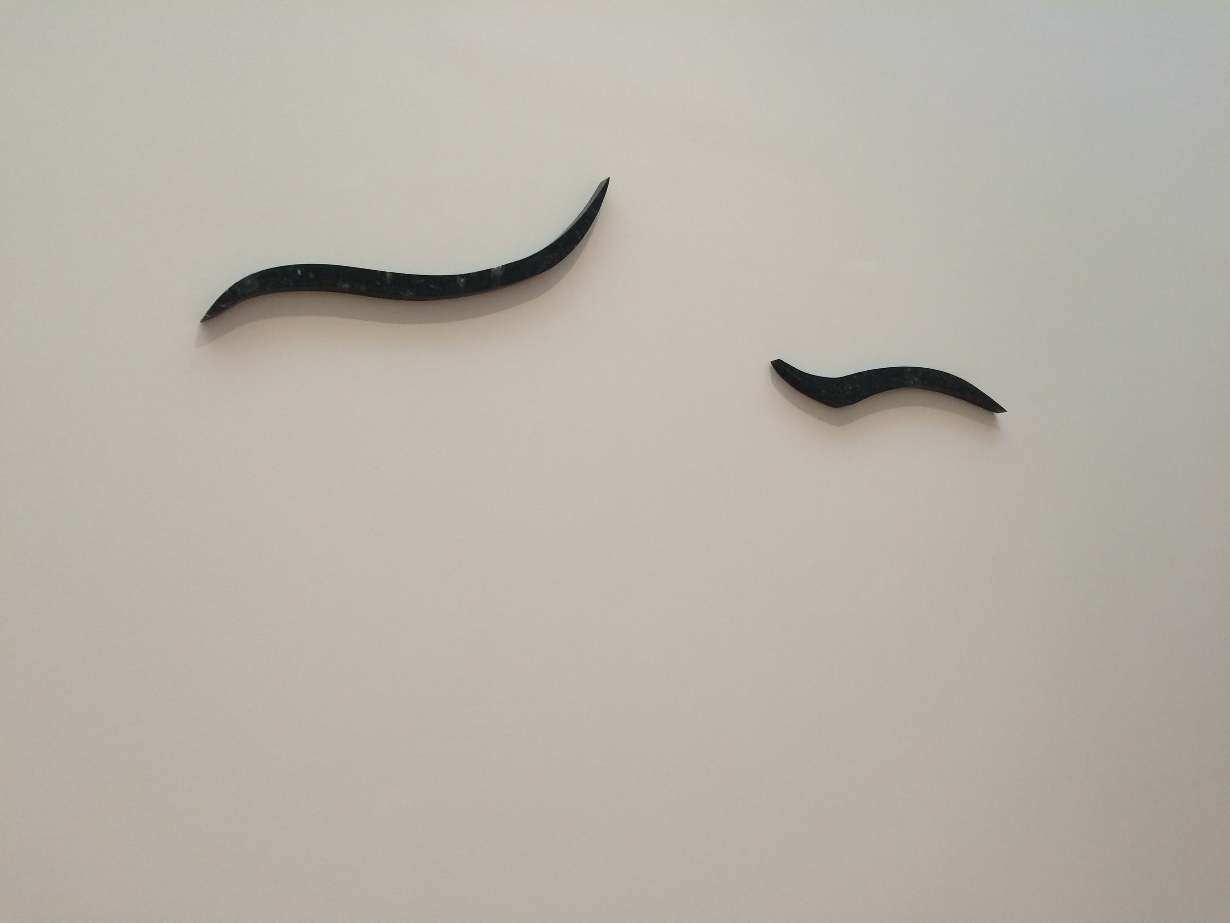 It’s January, 2016. My sister and I are at a museum in London, and we walk up to an art piece called “Eyeliner Tutorial” by Rallou Panagiotou. I mistakenly think its says, “Eyebrow Tutorial.” I think they’re odd looking eyebrows, but I can’t stop looking at them. My sister takes pictures, while I reach up, like I can pull them off the wall. I remember the security guard in the corner, and I run my fingers over my own brows, and I get dark brown smudge on my hands. It looks like soot, and I feel like a chimney child in a Blake sketch. I want to feel the jet-black curves of the eyebrows on the wall. I want to wear them like a hat on my head. They make me want to slide down the rail at the tube station.