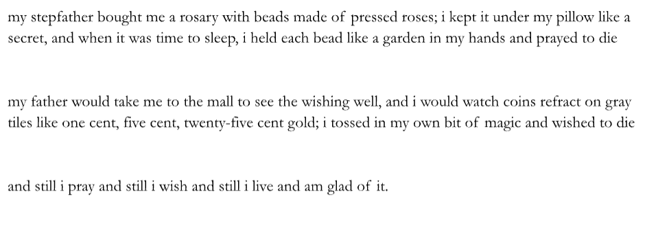 Lena Kinder has an MA in creative writing from the University of Southern Mississippi and is pursuing an MFA in creative writing at Hollins University. Her works can be found in or forthcoming from Wigleaf, Salt Hill, Pinch, Flash Frog, and more. She is the editor-in-chief of Folklore Review. You can find more on about Lena at https://lenakinder.squarespace.com/
