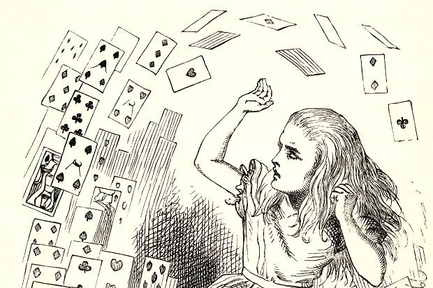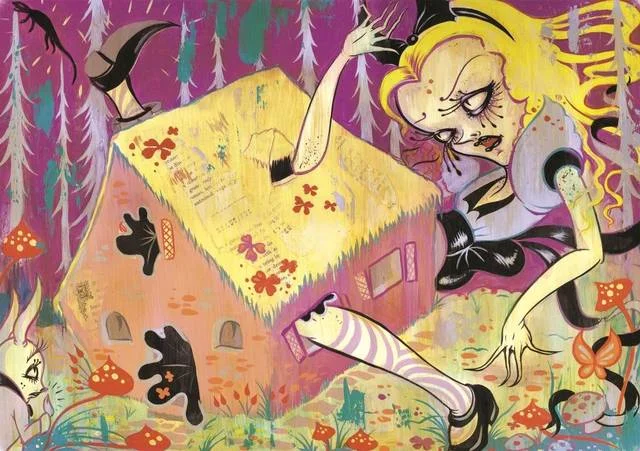 Camille Rose Garcia’s illustrations for the 2010 edition of Alice’s Adventures in Wonderland are a delightfully profane counter-aesthetic to the Disney Alice. Like that Alice, she has butter blonde hair, yet she equipped with super skinny Clara Bowesque eyebrows, spider-leg lashes, and jet-black accessories.