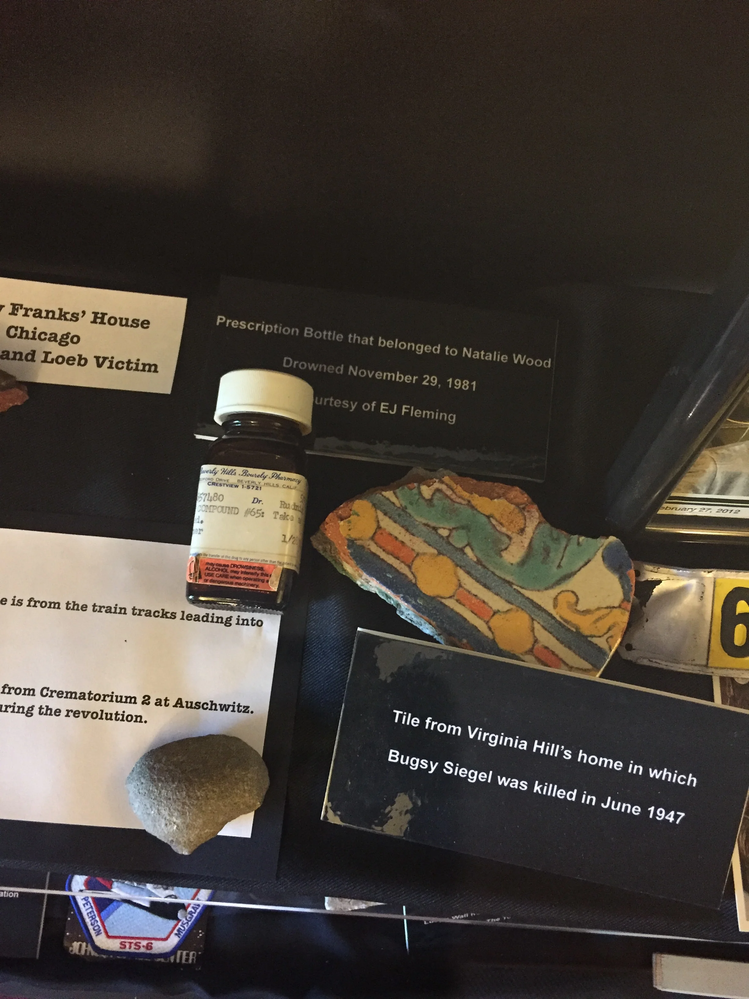 There was prescription pill bottle that belonged to Natalie Wood. Dried and preserved funeral flowers from Eva Gabor and Shelley Winters. The mint green hotel door from room 261 of the Regency Hotel where performer, singer, and drag queen Divine died of an enlarged heart. I felt conflicted. Conflicted by my exhilaration for the impending tour and the museum’s haunting artifacts and, yet, simultaneously distressed by the fetishization (both my own and owner’s) of relics of tragedy. My internal struggle grew when the owner of the shop approached me and gleefully pointed to a barren tree branch hung on the wall.