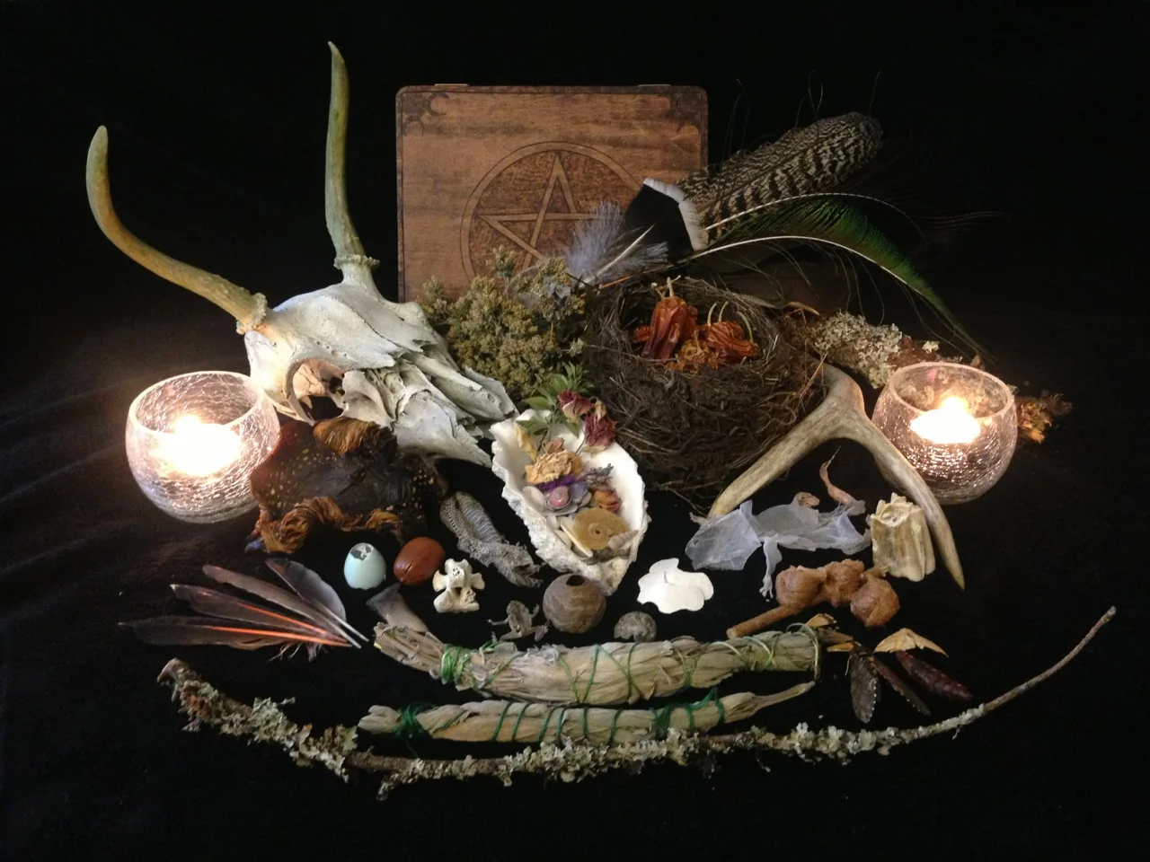 Once you’ve honed in on those, the belongings you choose will become easier to filter through. Consider going on a nature hike to find organic paraphernalia like branches, rocks, bones, feathers, or dried flowers to add to your collection. A goblet or saucer of water can symbolize many things, and serves as a potent tool for cleansing, which can be useful to ponder when we spend time in front of our area. Candles, incense, oil diffusers and small lamps are good for setting an ambience. Crystals are awesome for clearing or attracting energy—but make sure to study what types of crystals you have before placing them to make sure it’s going to do the things you want them to do, and double check if it compliments or takes away from another crystal’s energy if you have more than one. Your altar can change as your life changes, so don’t feel like you’re stuck once you set yours up.