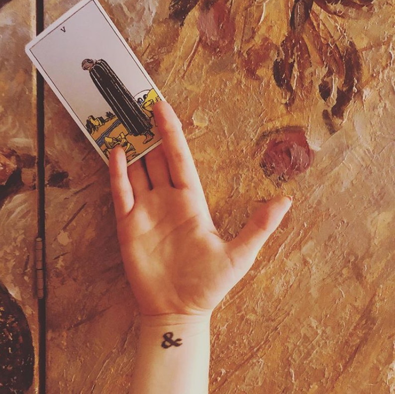 If I'm alone, I'll pull a single tarot card with a specific focus on themes like, say, expansion, transformation, or healing (#Scorpio here). The tarot card meanings that come with each individual deck are certainly something I'll take into account (I personally work with The Wild Unknown, as the animal and natural spirit of the deck speaks to me more than human figures do), too.