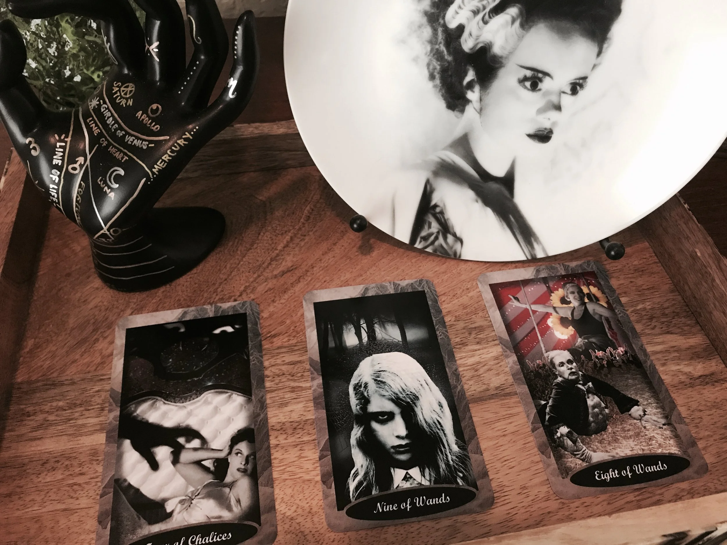 I am enamored with all things tarot and all things vintage horror. I routinely scour the Internet for the latest or unusual decks to add to my growing collection of tarot cards or unique pieces of art featuring my favorite scream queen, the Bride of Frankenstein.